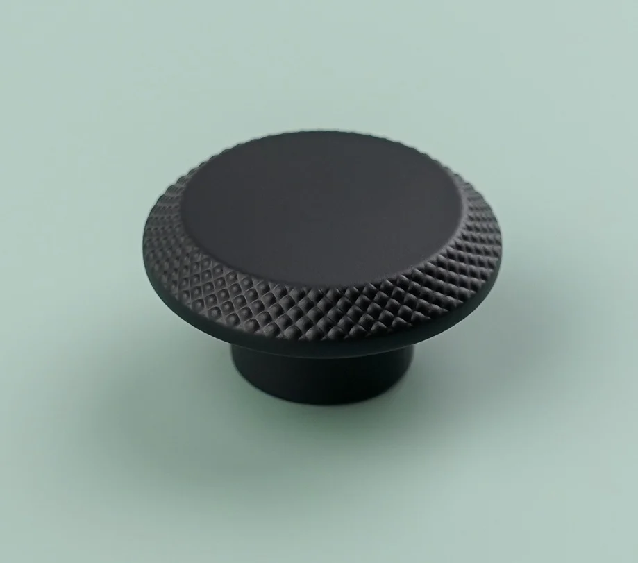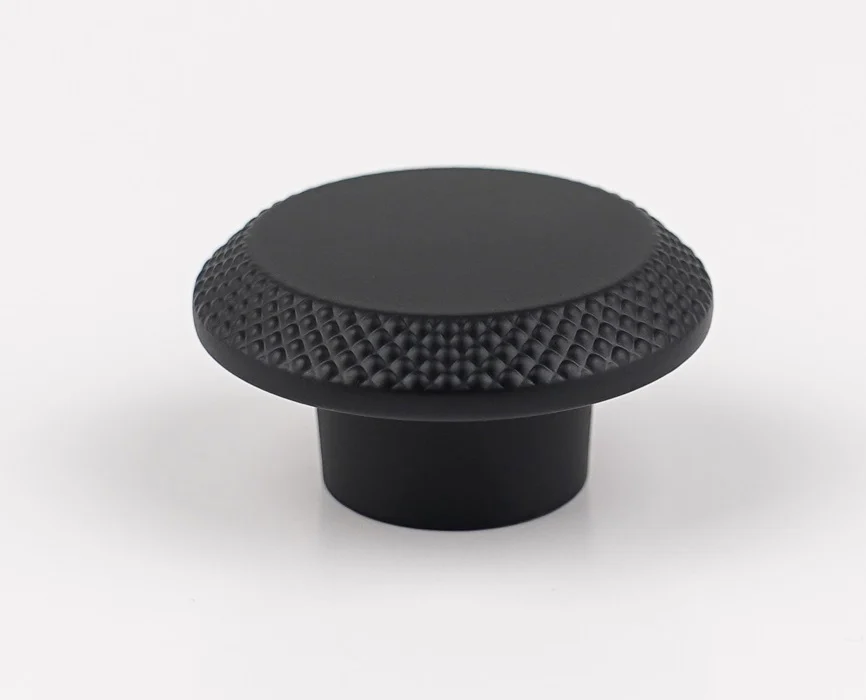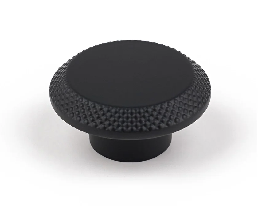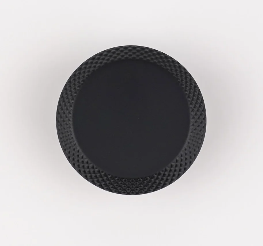 Buton pentru mobila Cebi. Dimensiuni: D:45 mm; H:20 mm. Finisaj: Negru mat CB. Material: Zamak. Colectie: Nola – Livrare 3 zile lucratoare
