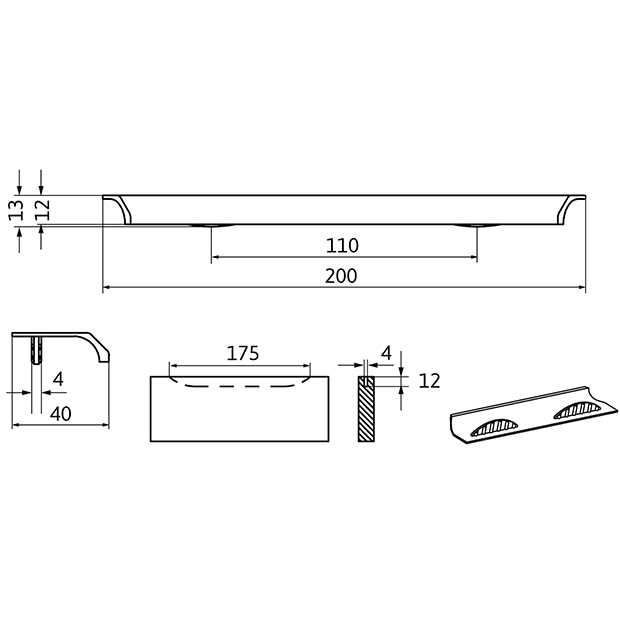 Lungime /dimensiuni 200mm – 200x13x40mm