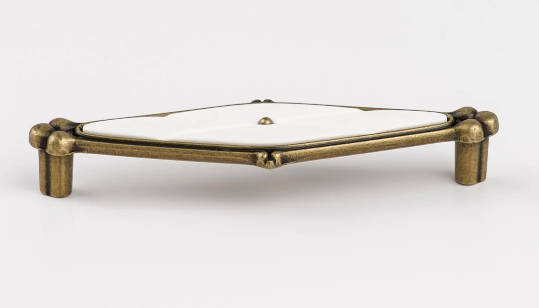 Maner pentru mobila Cebi. Dimensiuni: L:145 mm; l:38 mm; H:23 mm. Finisaj: Alb/Alama antichizata. Distanta intre gauri: 128 mm. Material: Zamak/ABS. Colectie: Grace – Livrare 3 zile lucratoare