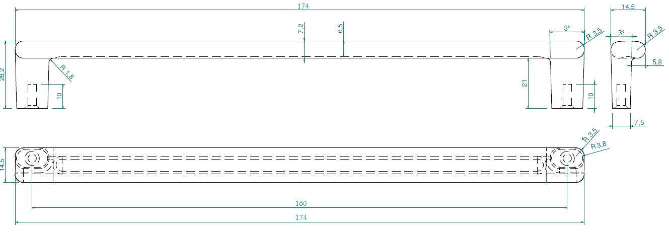 Dimensiuni: L:174 mm; l:14.5 mm; H:28.2 mm